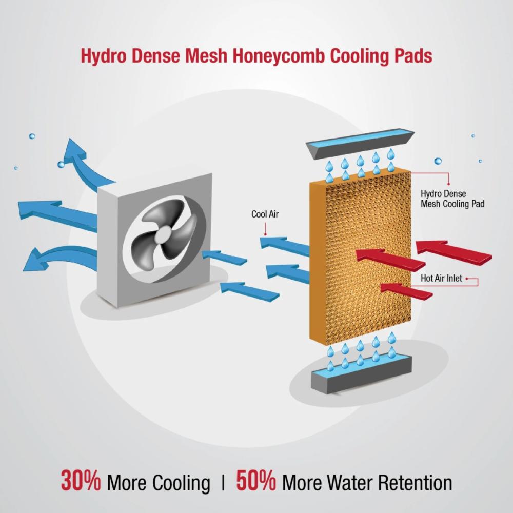 - Comes with Hydro dense mesh honeycomb cooling pads with 50% more water retention and 30% more cooling ensures prolonged cooling.
