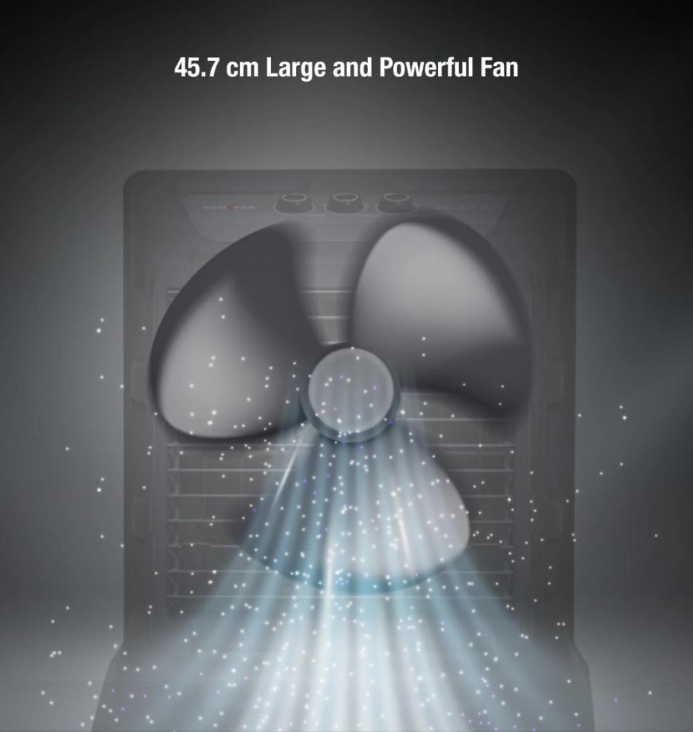 - Heavy-duty double ball bearing motor, concealed water pump fit for all kinds of water and 45.7 cm large and powerful high-grade Aluminium metal blades fan for optimal air circulation available at the best price.