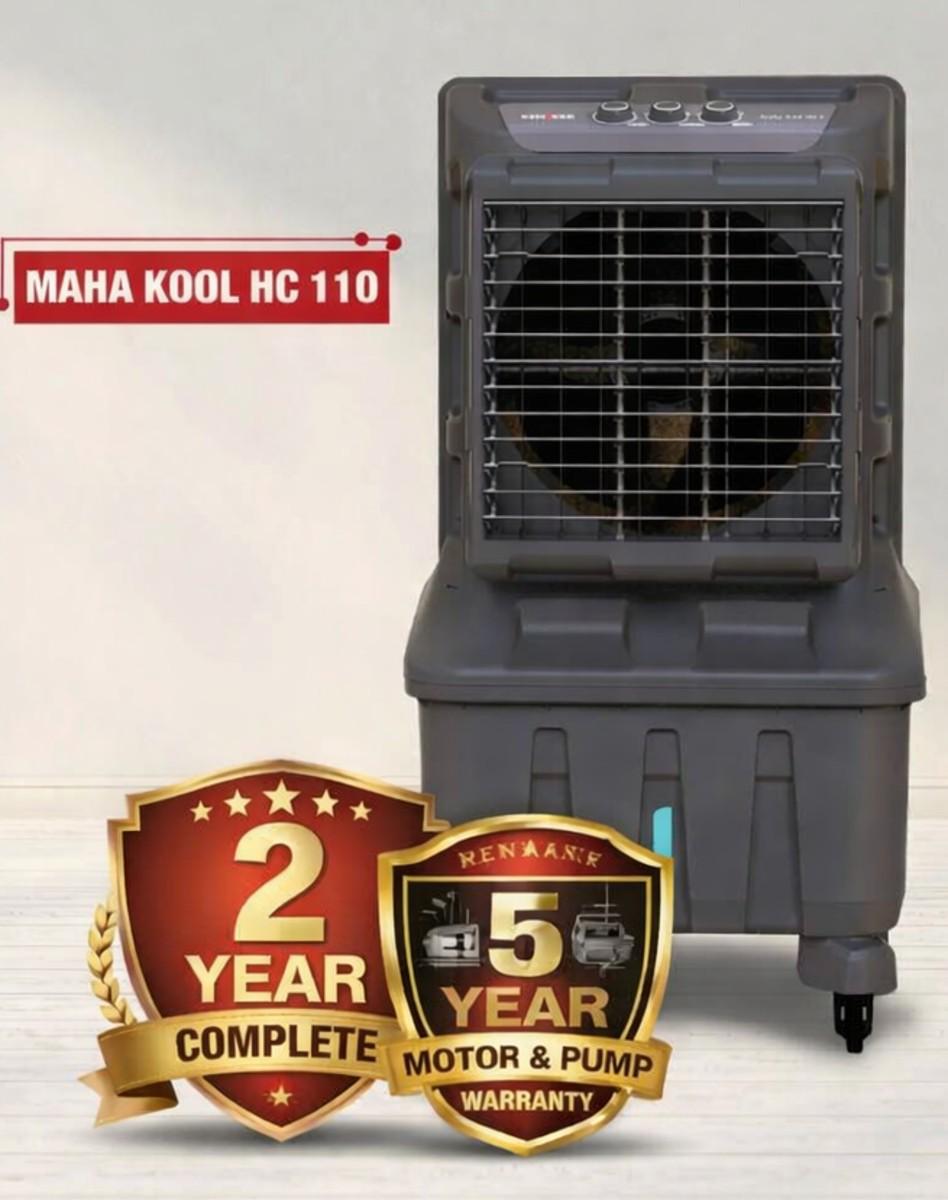 - The MAHA KOOL HC 110T air cooler comes with a large 110-litre water tank ensuring prolonged cooling performance.