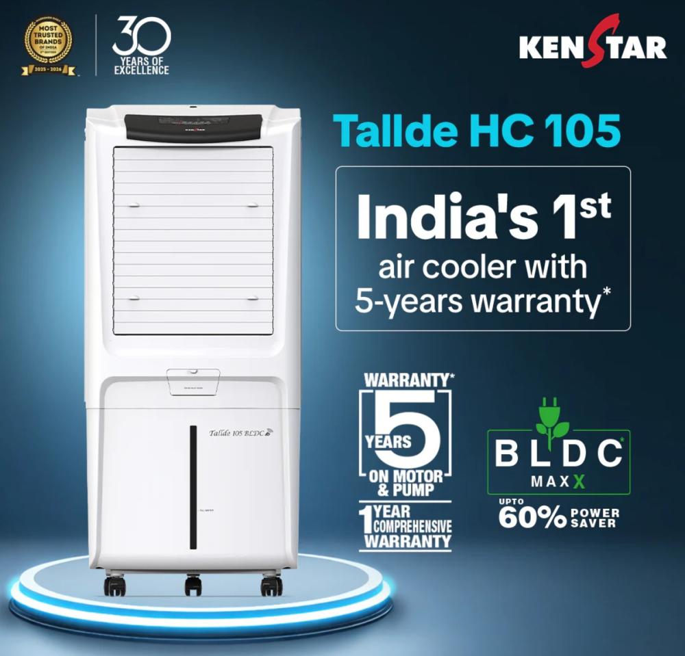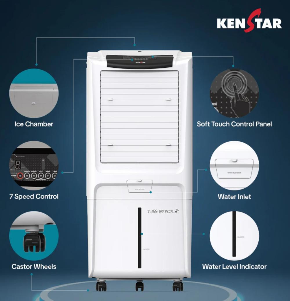 - Large Water Tank Capacity – The TALLDE Honey Comb 105 Litre BLDC air cooler comes with a spacious 105L water tank, ensuring extended hours of uninterrupted cooling.