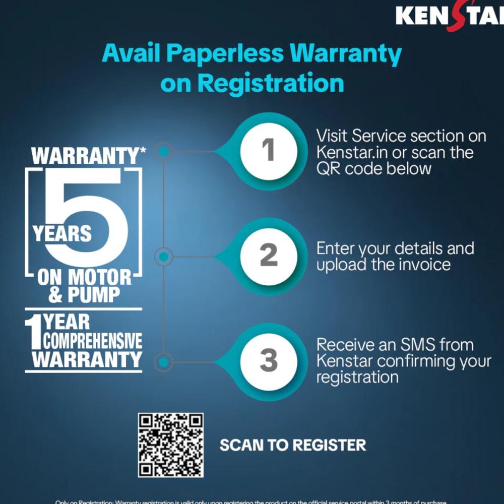 - Warranty – Backed by a 1-year comprehensive warranty, along with 5 years warranty on the motor and 5 years warranty on the pump, for long-lasting performance and peace of mind. T&C apply