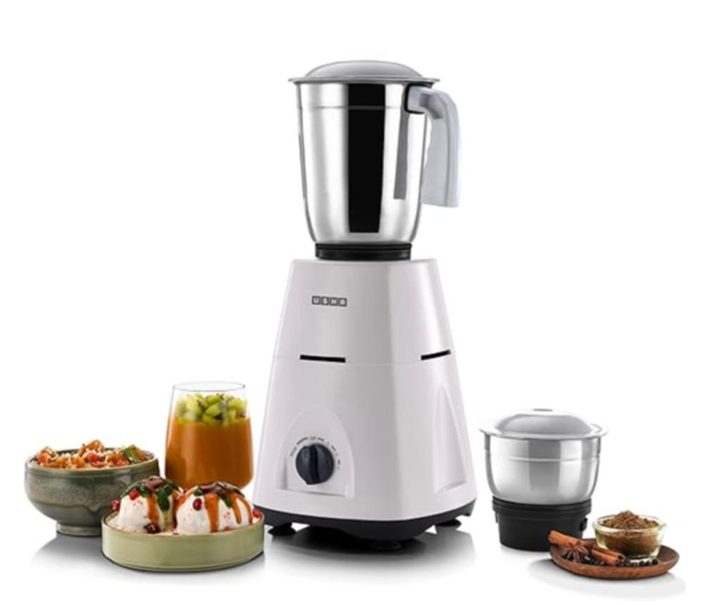 Usha MG3750 MG 500-Watt 2 Stainless Steel Jars with 3-speed mode,100% Copper Motor with 2 years Product Warranty & 5 Years Motor Warranty, White